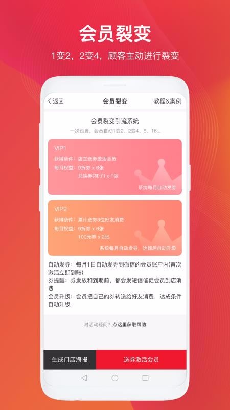 4、进入客流裂变系统中,就可以查看会员裂变、店铺分销、在线商城等功能信息