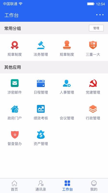 4、个性化的常用分组栏,工作台里面还为用户设置常用分组,支持自定义管理;