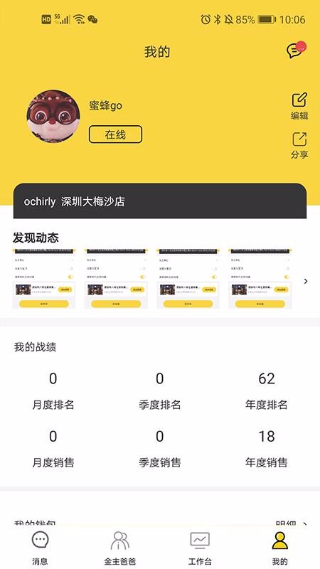 蜜蜂go员工端是一款高效的协作办公软件,主要为用户提供客服解答、客户管理、订单管理以及营销管理等功能;适用于客服以及销售人员,这些用户可以在该软件中实时接收来自客户端的咨询问题,通过该平台能及时将解答的问题传递给客户,客户就能在接收到该信息后下定决心购买了,从而轻松获得客户交易订单业绩,另外还针对客户管理需求专门设置了金主爸爸中心,这里能更便捷的管理所有客户;它还在主功能栏里面设置了工作台中心,这里的功能版块清晰,其功能应用非常丰富,满足用户日常营销办公管理需求。