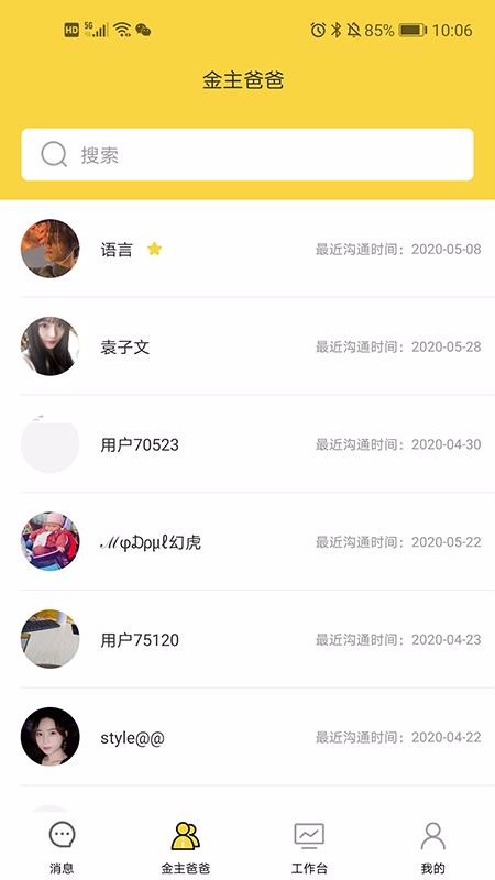 4、返回打开金主爸爸中心,浏览所有的客户列表并选择星际客户立即沟通