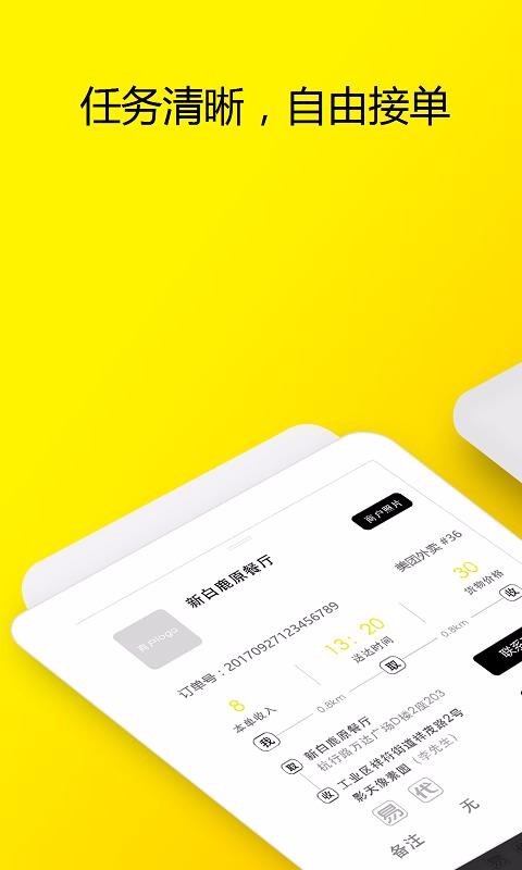 3、任务清晰,详细展示了订单信息,包括商家地址、顾客地址、备注等;