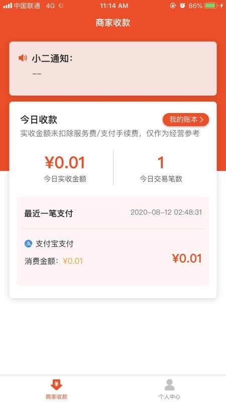 3、在首页中,用户可以查看到今日的收款数据