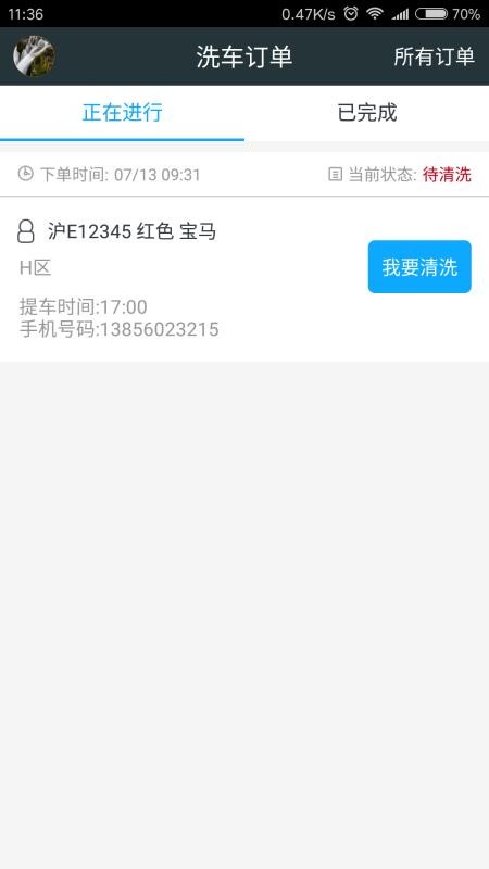 2、在这里,用户能够看到各种洗车订单信息,快速为客户清洗车辆;