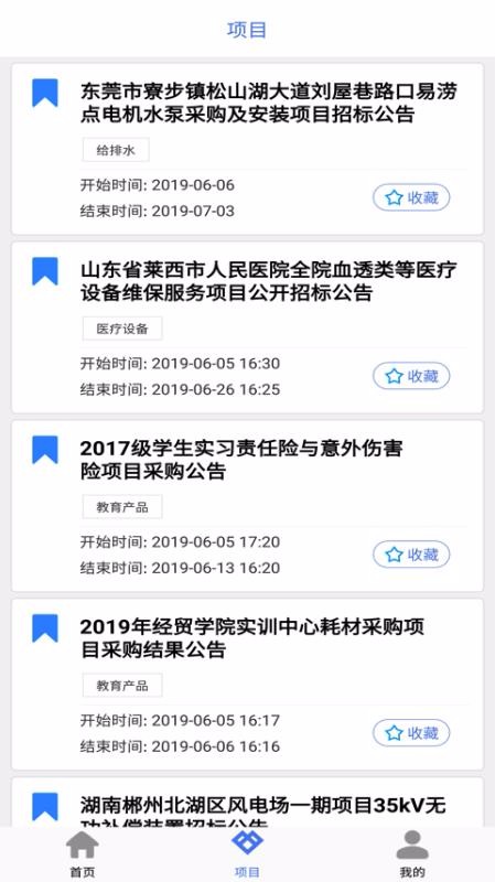 4、返回打开项目中心查看所有项目列表,选择某项目点击查看详情或收藏