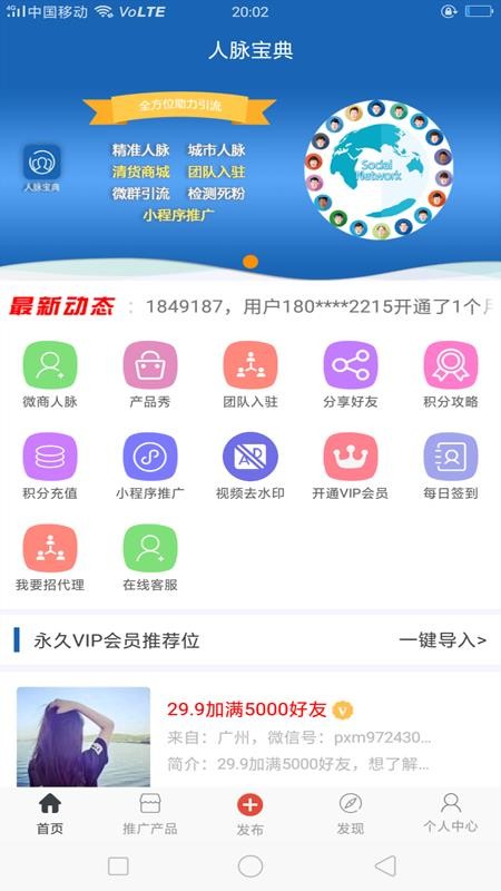 1、为用户提供微商人脉版块,帮助各个微商快速获取更多的人脉关系;