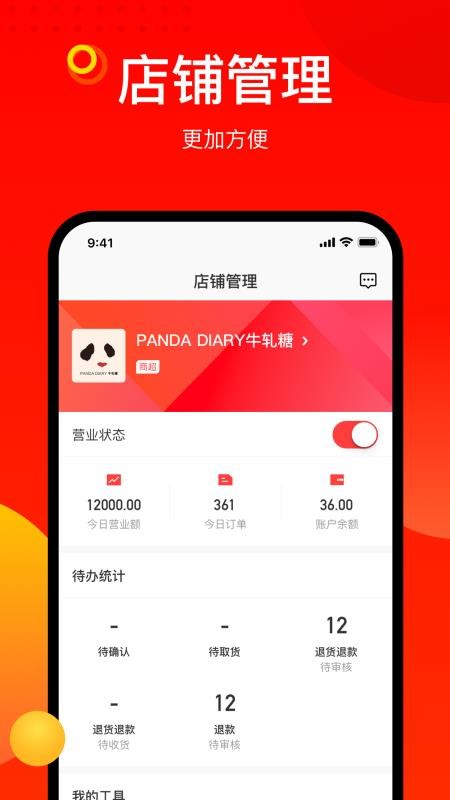 5、通过软件中的各种工具更便捷的管理各个商品和订单,一键调整当前的营业状态