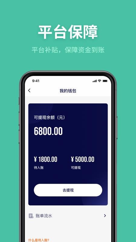 1、为用户清晰显示自己的累计收入、近30天收入、待入账和可提现金额信息;