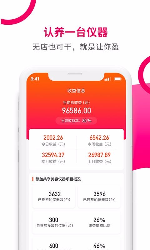 你火啦是一款专门为美业人打造的新型营销管理平台,依托新型的共享科技设备营销模式,给投资人、店主以及美容师等带来了便捷的管理和监控服务;作为投资人,你可以在该软件上轻松监控自己投资美容仪器的收益状态,该软件连接了仪器设备的感应系统,能实时传送设备被使用的信息,同时包括设备使用支付金额数据也能一目了然,它还在软件中提供便捷的美容院查询服务;当用户想要巡查合作店铺信息的时候,只需要找到相应的店铺就能打开对该店铺基本信息核查,还能对自己合作的项目产品进行巡视,实时了解产品一起使用状态。