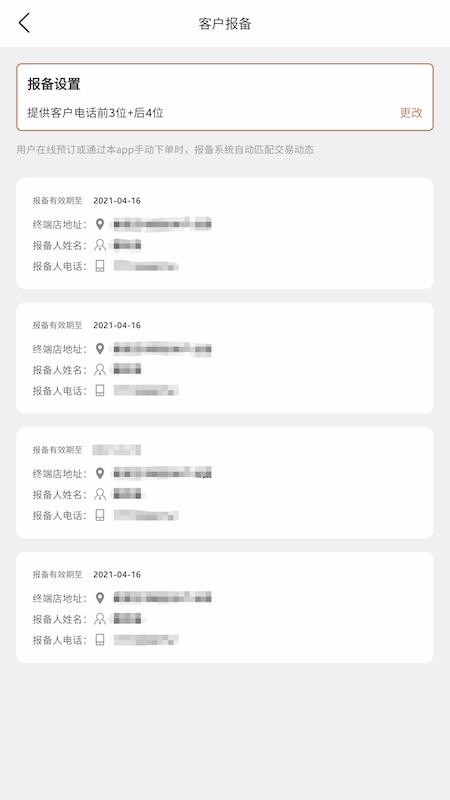 4、进入客户报备页面并查看交易动态,或点击更改报备设置内容