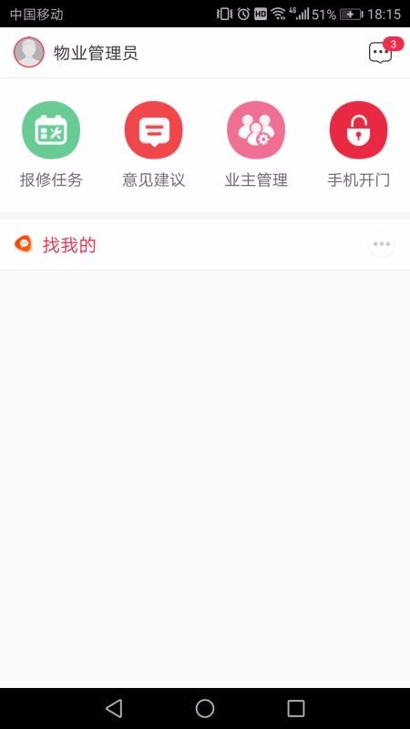 2、进入首页中,可以选择报修任务、意见反馈、业主管理、手机开门等功能进行查看