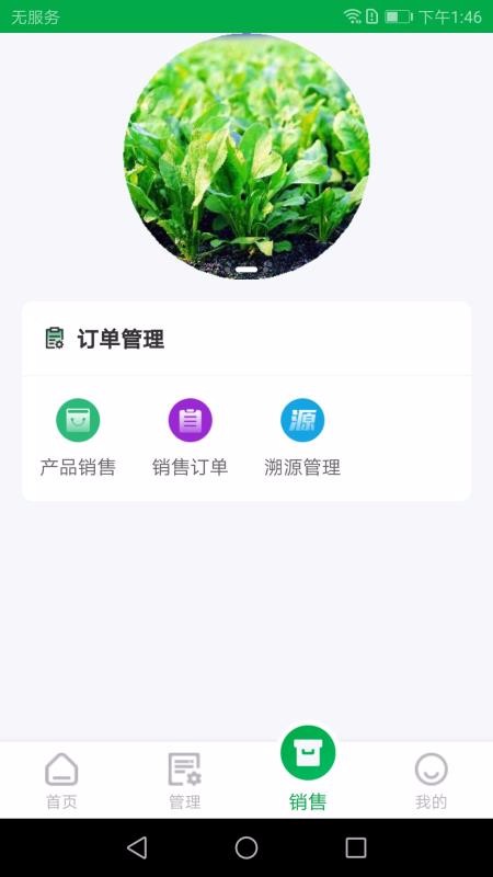 2、实用简单的销售管理中心,这里提供了产品销售、销售订单和溯源管理项目;