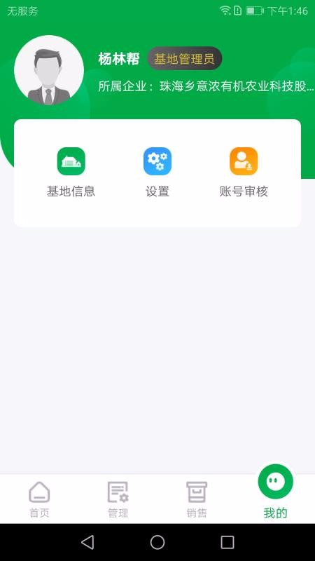 1、简单的个人中心管理功能,里面为用户设置了基地信息、设置以及账号审核功能;