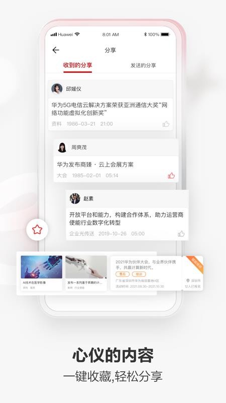 5、打开分享版块,查看自己收到和发出的各种分享内容,了解更多行业信息