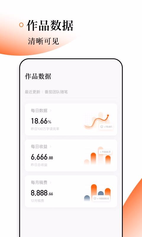 番茄作家助手是一款小说文章创作软件,它为用户带来了移动式的写作场景,连接了小说大数据数据统计系统,为用户提供一站式的小说创作和反馈服务;里面设置了非常科学的写作流程,按照创作的需要设置了创建作品、章节以及章节管理等功能,满足作者对整篇文章或某章节进行管理的需要,针对创作效果查询需要还开设了作品数据中心这里为用户统计每天的小说文字完成率等内容;该平台还会为作者们不定时的举办创作活动,系统会将这些活动信息通过消息形式传递到消息中心,用户能通过消息详情里面的报名渠道参与活动。