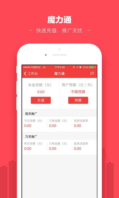 6、提供魔力通版块,用户可以快速充值费用,帮助用户更高效的推广;