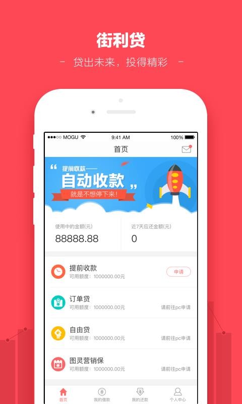 3、应用中有街利贷版块,帮助用户更轻松的贷款,保证资金顺利周转;