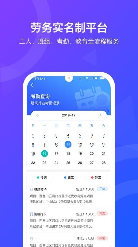 1、为用户提供考勤管理版块,让用户可以清晰看到各个工人的考勤信息;