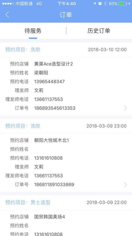 4、历史订单,记录了客户的每一个预约订单,可随时进行查看;