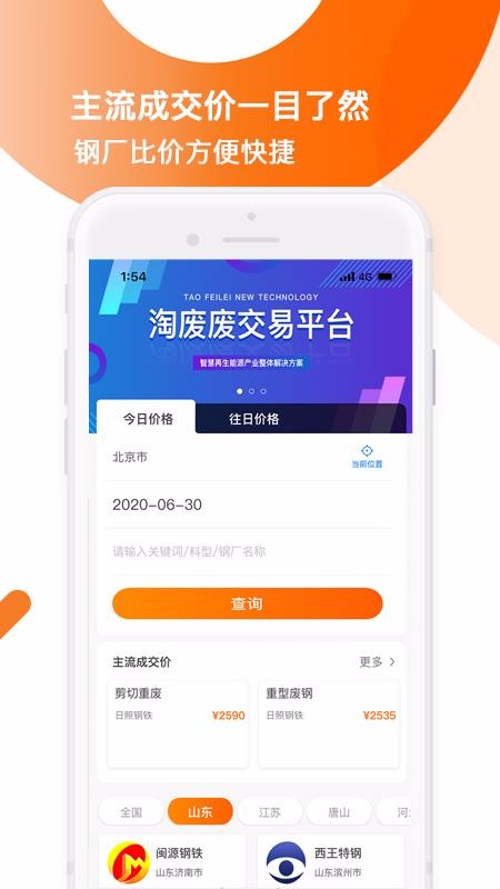 4、便捷的钢厂比价和查询方式,首页为用户设置便捷的价格查询和区域筛选标签;