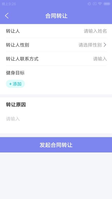 4、进入合同转让版块,填写转让人姓名、性别和联系方式等信息,快速发起转让