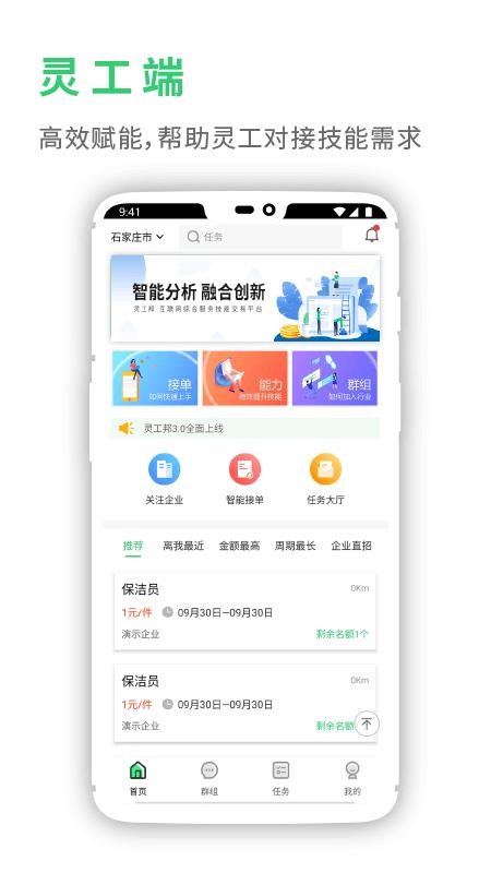 灵工邦app是一款为各个企业和个人提供服务的软件,让企业能够轻松找到各种各样的人才,帮助零工更便捷的找活;用户在软件中能够找到多种类型的企业用工信息,快速了解各个工作的详细内容,选择自己需要的工作快速和企业进行联系沟通,提高自己找工作的效率,同时各个企业可以在这里快速发布各种类型的需求,轻松招聘到企业需要的各种人才,为企业办公带来更多的便利,并且各个零工能够在这里进行交流互动,快速提升自己的技能水平,拓展自己的人脉关系;快下载这款软件试试吧,体验不一样的用工模式。