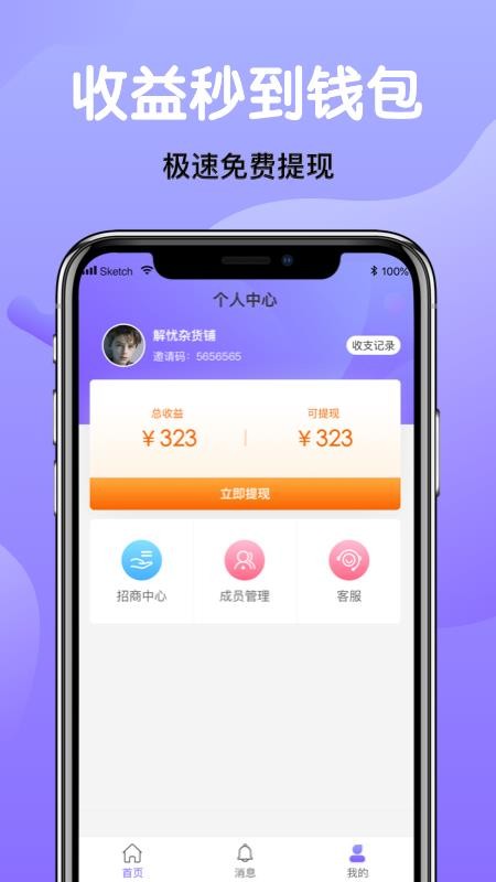6、在“我的”界面中,用户可浏览到门店的收益情况