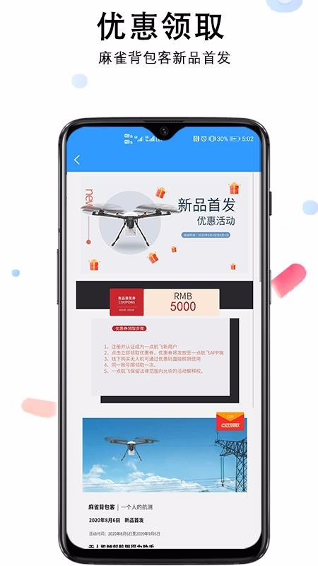5、提供新品首发优惠,不仅给用户提供便捷的航飞器材购买渠道,还提供新品首发的优惠;