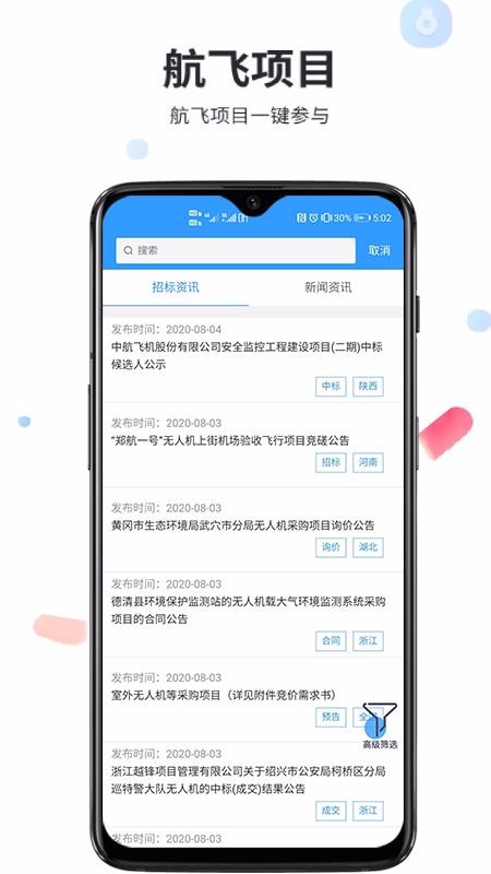 6、海量项目资源,航飞项目专区中为用户汇集海量的招标资讯以及新闻资讯内容;