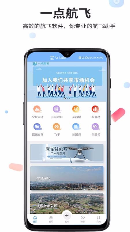 一点航飞是一款航飞项目商机信息平台,里面汇集了海量招标项目,还有众多的航飞器材资源,支持在线购买或租赁各种航飞器材;该软件为航飞商家们带来了众多的商机资源,从平台上就能轻松找到能合作共赢的项目,作为投资商也能从里面找到高收益的航飞投资项目,这些项目给用户带来便捷的合作渠道,无论自己是想要咨询价格还是想投标,都有相对应的便捷入口;这里的航飞领域资源丰富,除了各种合作项目外,还汇集了大量的飞手、制图师以及测量师等人力资源,给广大企业或公司们提供了贴心的人力获取渠道。