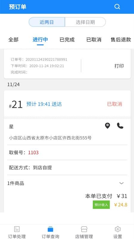 2、订单查询,记录了门店的每一个订单,可随时进行查询;