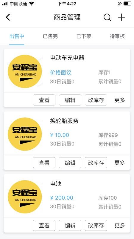 6、拥有商品管理版块,用户可以看到各个出售中的商品信息,在线编辑;