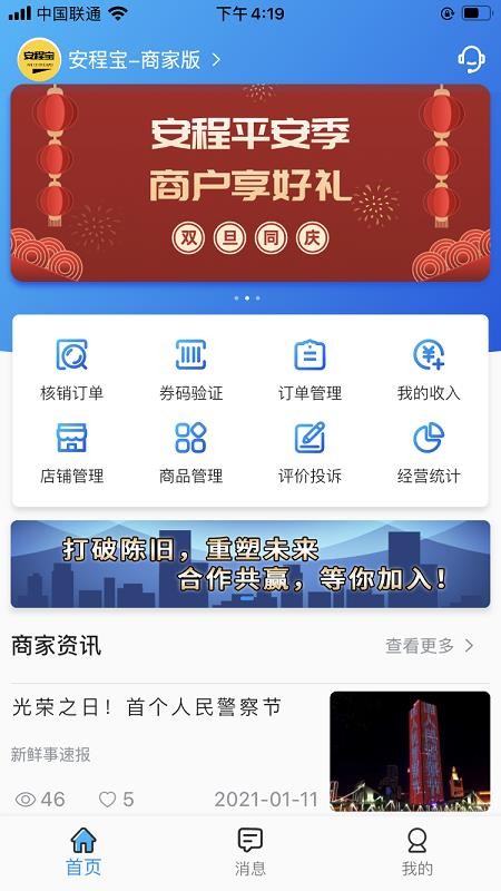 2、在首页中查看各种各样的商家资讯内容,快速对各个订单进行核销,在线验证券码