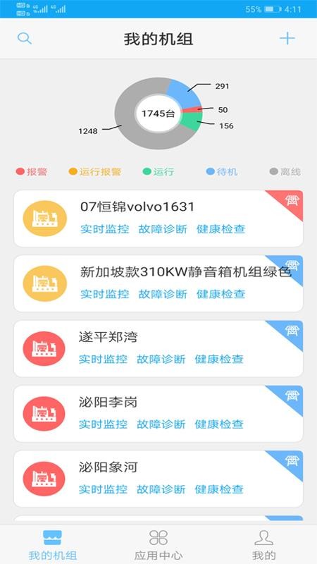 2、在首页中查看自己的各个机组信息,了解机组的详细在线情况和报警情况