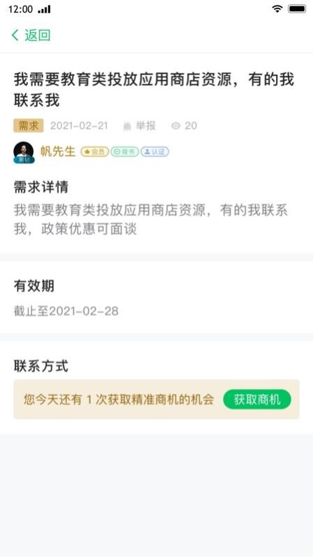 1、支持了解不同行业商机广告的信息,轻松了解广告详细的内容;