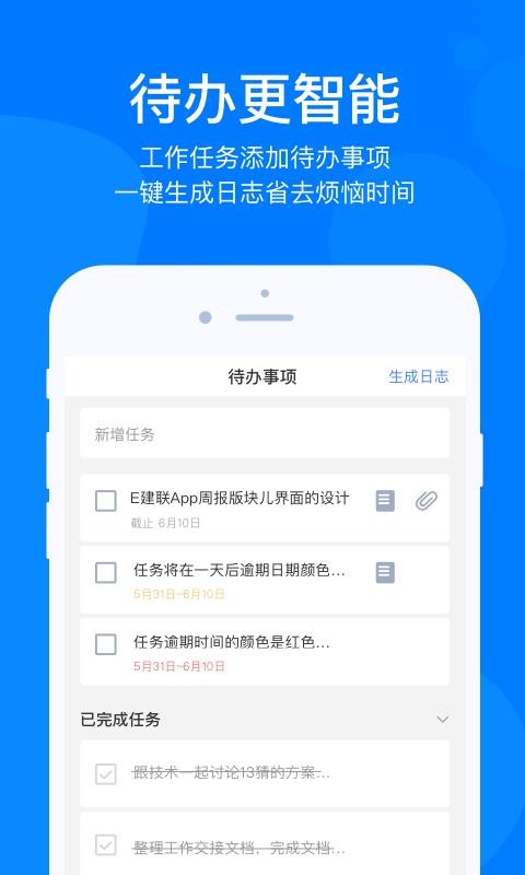 e建联app是一款专为建筑行业打造的在线办公软件,它采用了先进的互联网技术,为广大从业人员提供了强大的即时通讯功能,每个人都可以在这里和同事沟通交流,支持文字、图片、表情、语音等多种聊天方式,无论是工作上的交接,还是工作任务的安排,通通可以快速的进行传达,极大程度的降低了沟通成本;与此同时,该应用还拥有考勤模块,用户在手机上就能完成考勤工作,会自动记录考勤状况,并直观的展现在考勤日历中,可自由的进行查看,快速了解到自己的考勤历史,是否缺勤一目了然;感兴趣的话就抓紧时间下载体验吧。