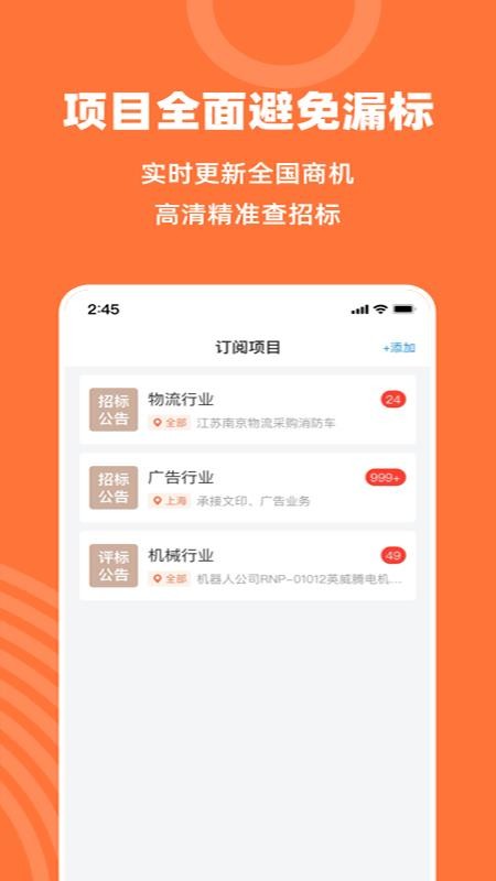 3、应用中有招标采购版块,让用户能够看到最新的项目招标内容;