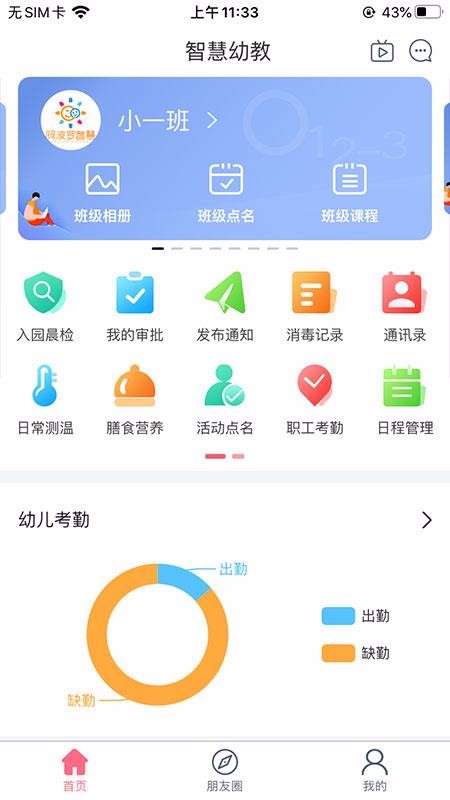 4、提供了幼儿考勤,可以根据时间查看统计的考勤数据,了解出勤和缺勤情况;
