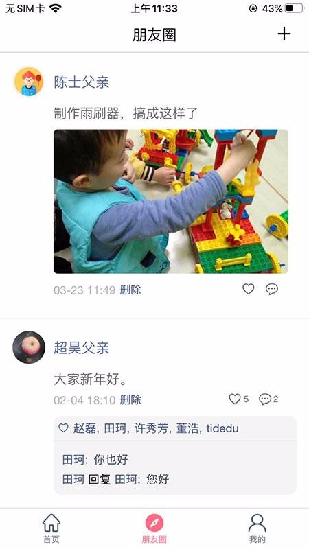 2、提供了朋友圈,可以浏览推送的家长动态,并在评论区进行交流;