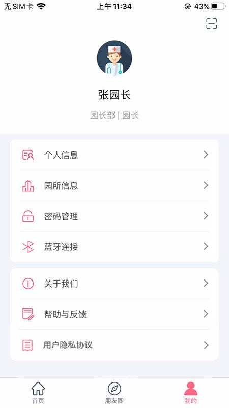 5、在我的页面里,为用户展示了个人信息、园所信息、密码管理、帮助与反馈等功能