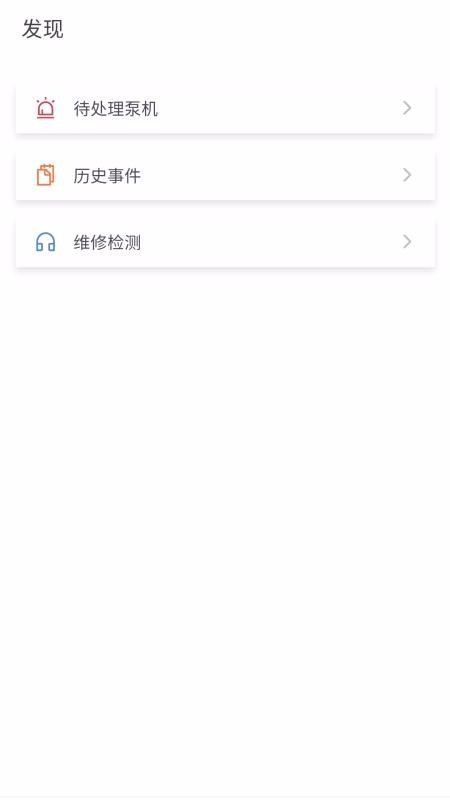 5、切换到发现页面查看功能列表,马上点击打开待处理泵机页面查看处理其中的泵机事件