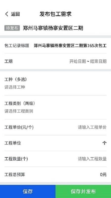 2、详细的包工信息,及时保存和发布包工需求内容,以便快速派工;