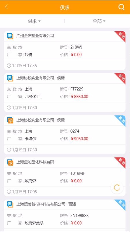 4、查看供求信息,了解市场需求的变化,并快速处理,让塑料交易更真实