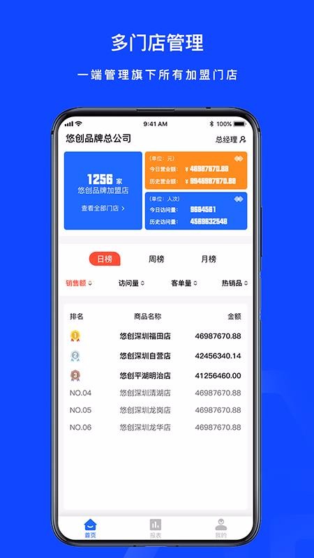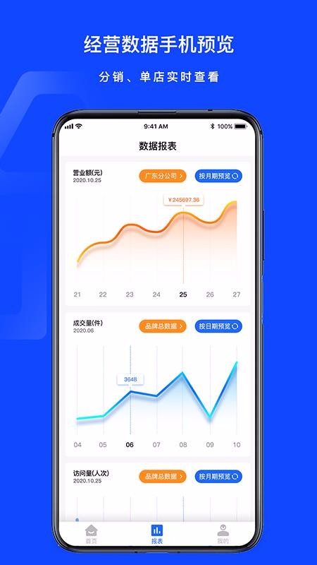 3、自动更新各门店的经营数据,分类展示统计数据,便捷掌握各门店的经营情况;