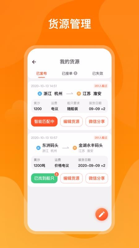 3、智能匹配让你的货源船运更方便,匹配船只更真实,给你更好的货源管理体验,货源配送更方便;