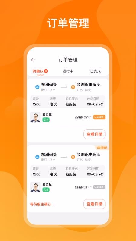 6、查看船只老板的认证信息,知道老板的情况,便于管理,让你更放心,提高船运的质量,货物运输更安全;