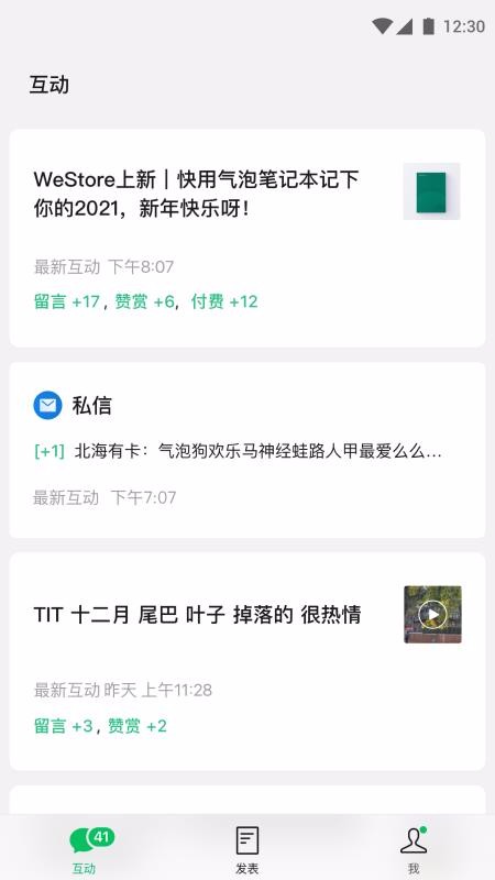 4、实时的互动提示信息,无论是点赞、赞赏,还是私信等信息都会第一时间提示到互动中心;