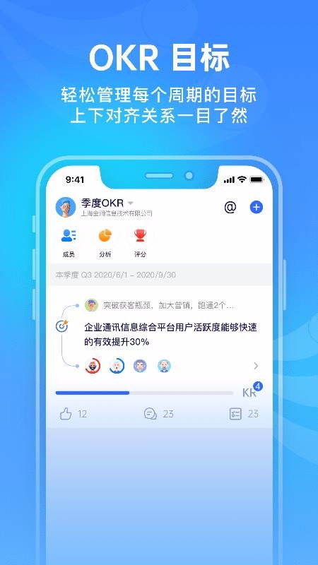 1、简洁的界面让你能更好的进行目标管理,让目标管理变得更简单,团队目标记录更真实,让办公更积极;