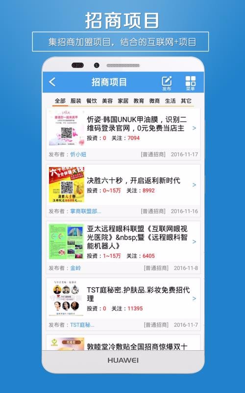 3、详细的分类让你知道创业和招商的信息,便于快速筛选,让招商和创业更专业,提高开店经营的质量;