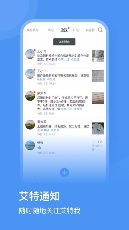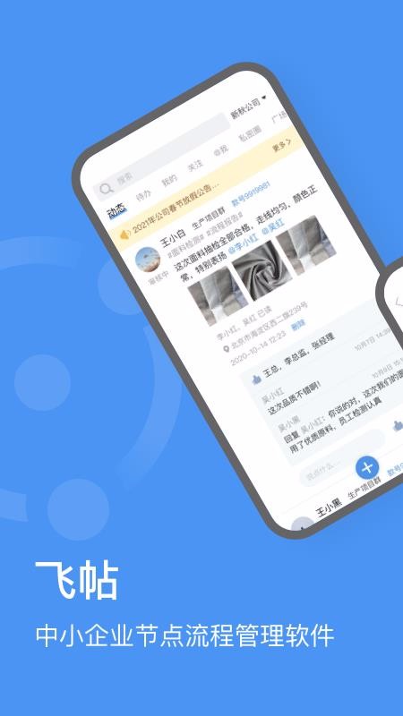 飞帖是一个企业专用的办公交互平台,能给企业用户带来高效的群组信息交流体验,同时还结合了各种审批流程节点管理与生产监控等功能作用;这是一个类似于普通社交应用的软件,它的主要适用对象是公司里面的全体员工,提供了群组管理、发朋友圈等功能,以发朋友圈的模式带给用户全新的交互体验,同时还在里面设置了不同的圈子栏目,包括广场公布的所有动态圈子内容,还有保障信息不泄露的私密圈模式;在该发圈模式下为企业公司形成了庞大的信息积累资源库,利用里面不同的类别划分栏目能快速找到相应的信息内容,加快了信息查询的速度。