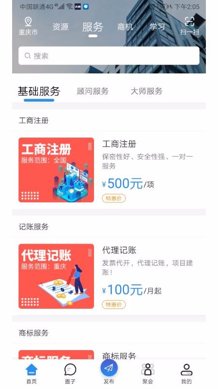 九龙联盟是一个企业资源服务平台,拥有海量的人脉资源、服务项目以及商机资源内容,开设了专属企业商家们互动交流的圈子中心;这是一个非常有价值的商务平台,企业能在该平台上找到各种人脉资源,这些人脉来自各种不同的行业以及职位,可以为商家提供不同方面的帮助,另外还为用户提供了便捷的私聊服务,提供了快捷的交流沟通渠道;上面还整合了众多企业常用的各种基础服务项目,包括工商注册以及代理记账等,这些服务还向用户展示了明码标价的信息内容,给企业带来更多的经营便利,需要的时候就能轻松到平台达成各种服务合作。